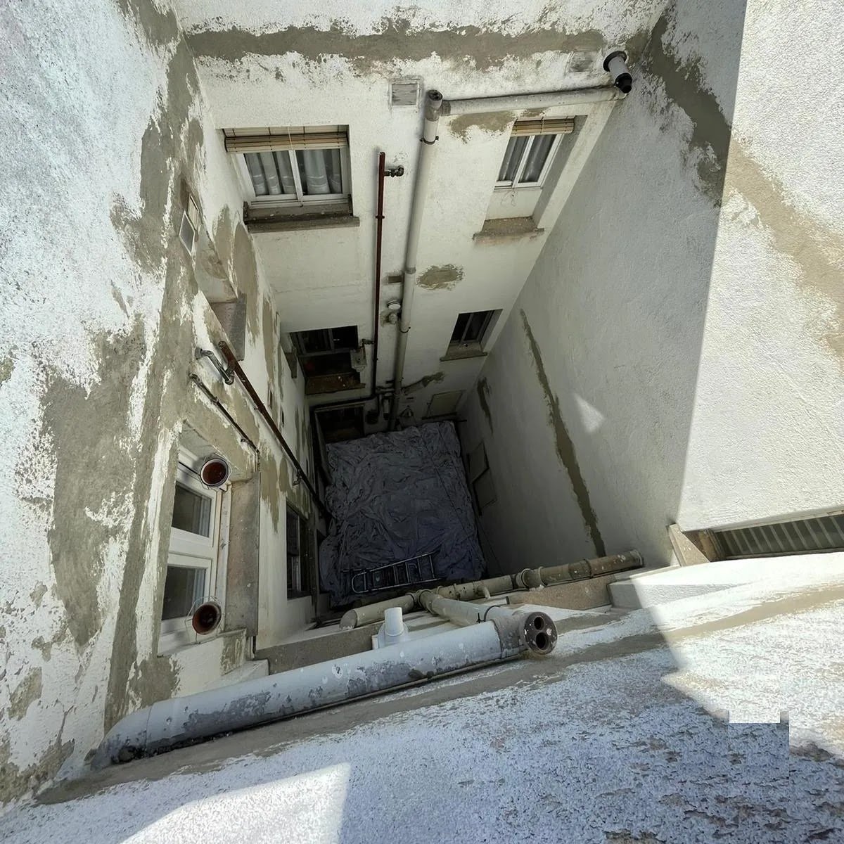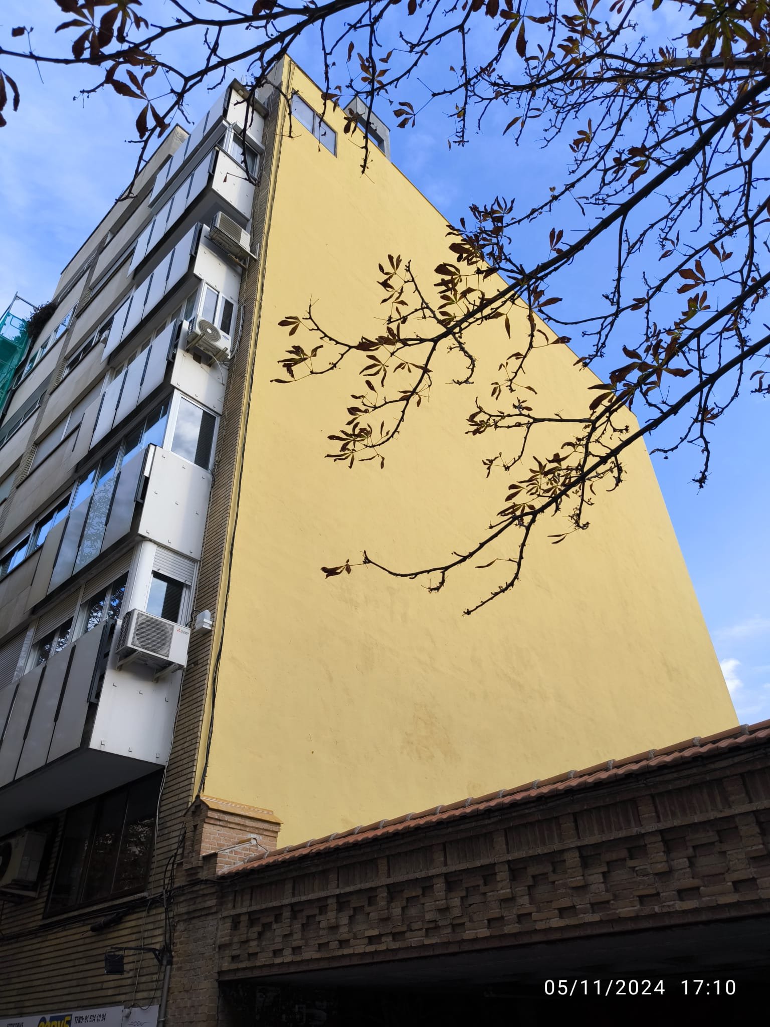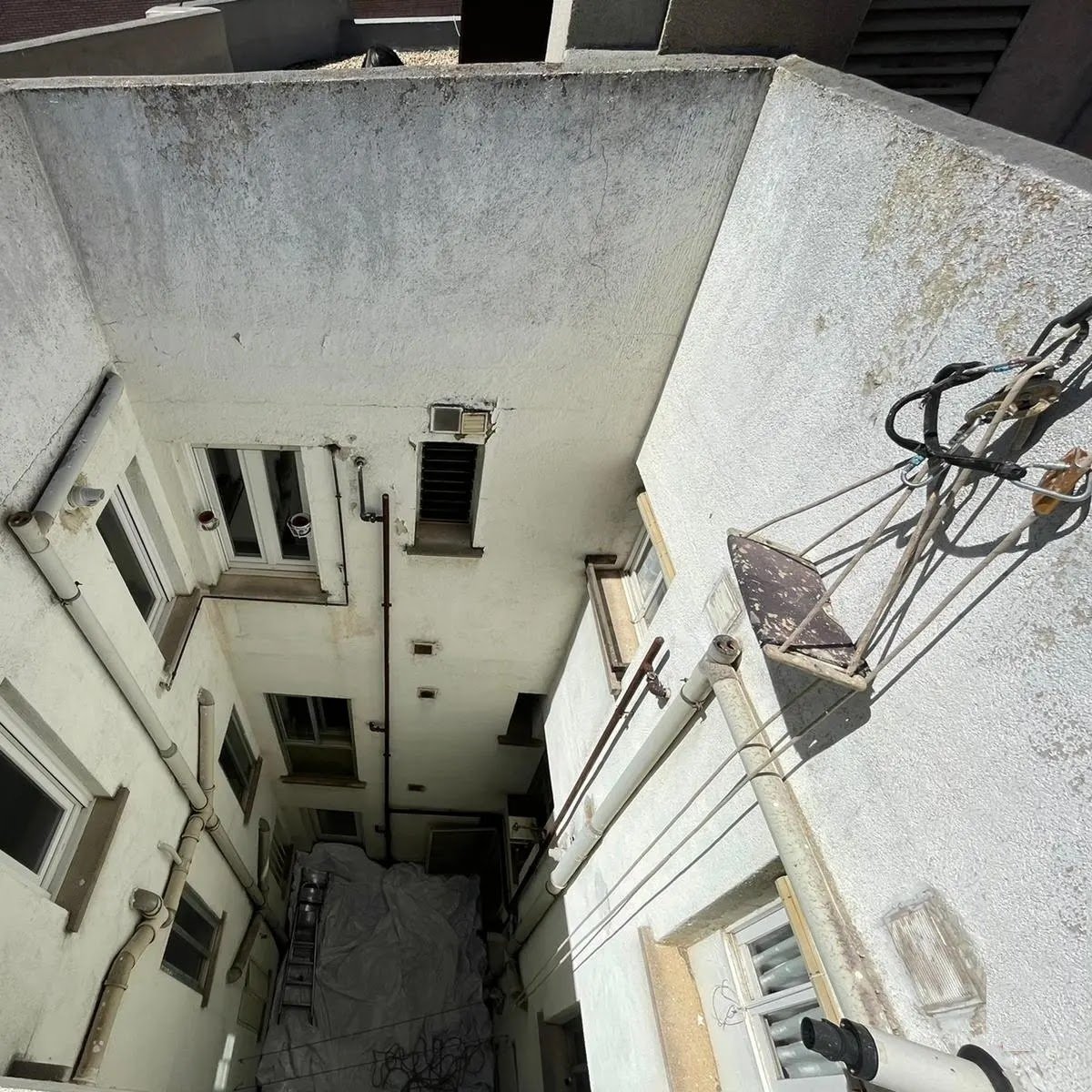 Rehabilitación de patio de luces realizado mediante saneado de fachada, y pintura, y señalización de tuberías de gas.