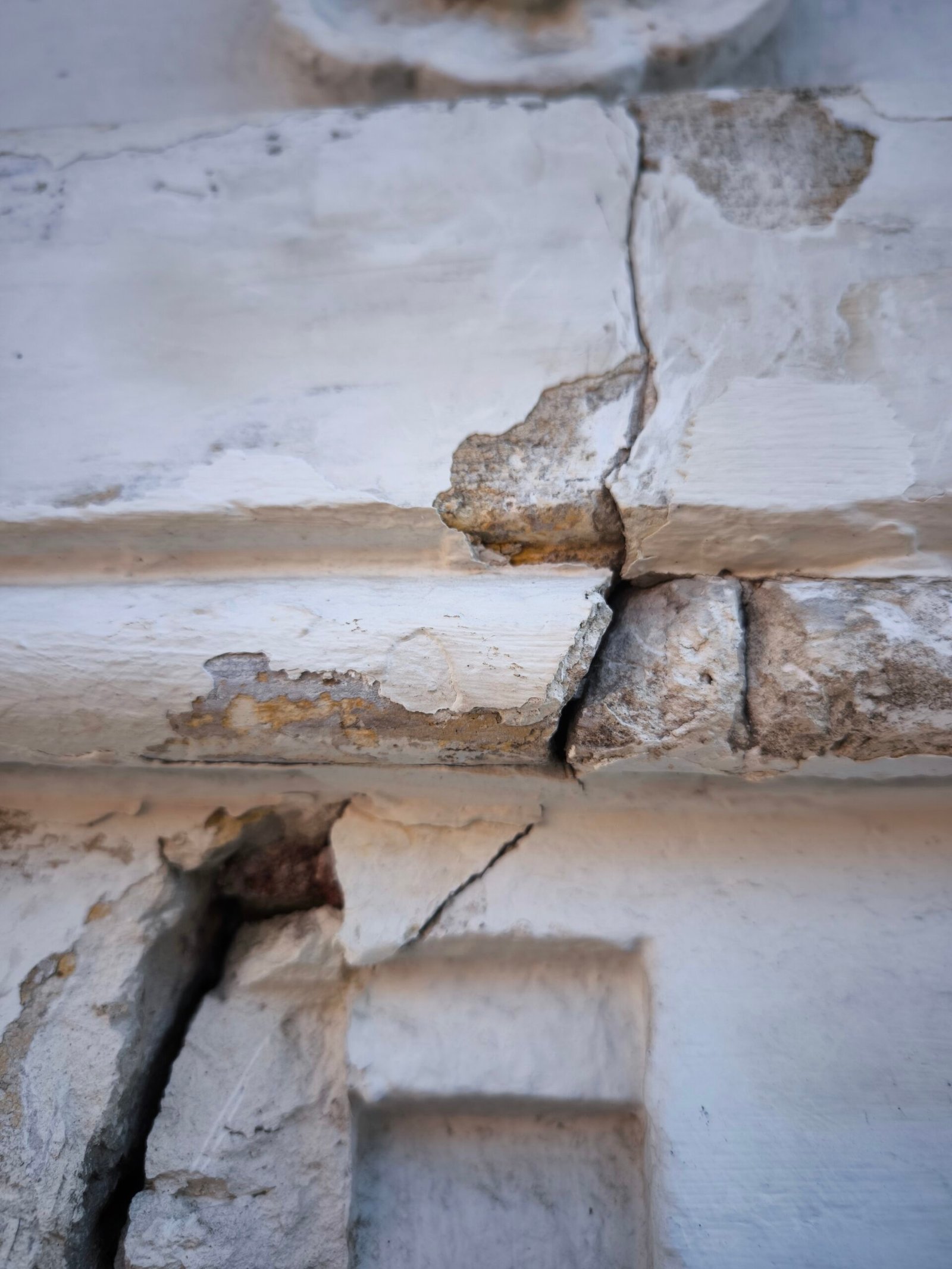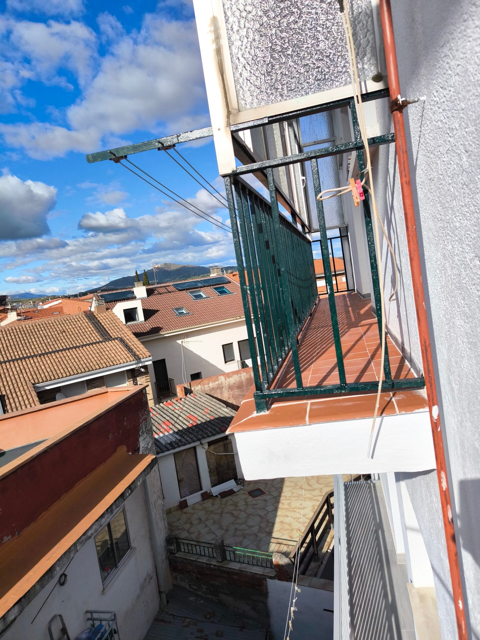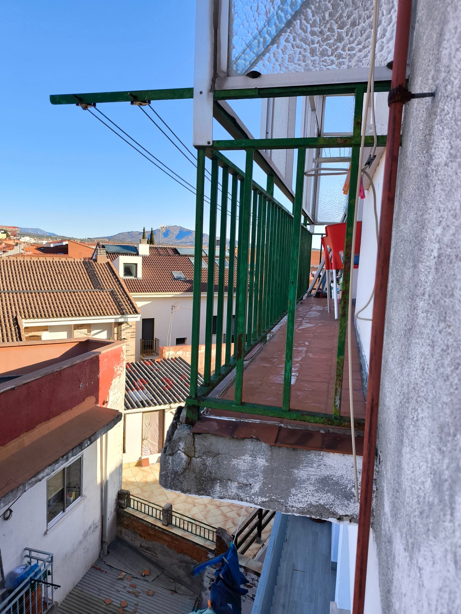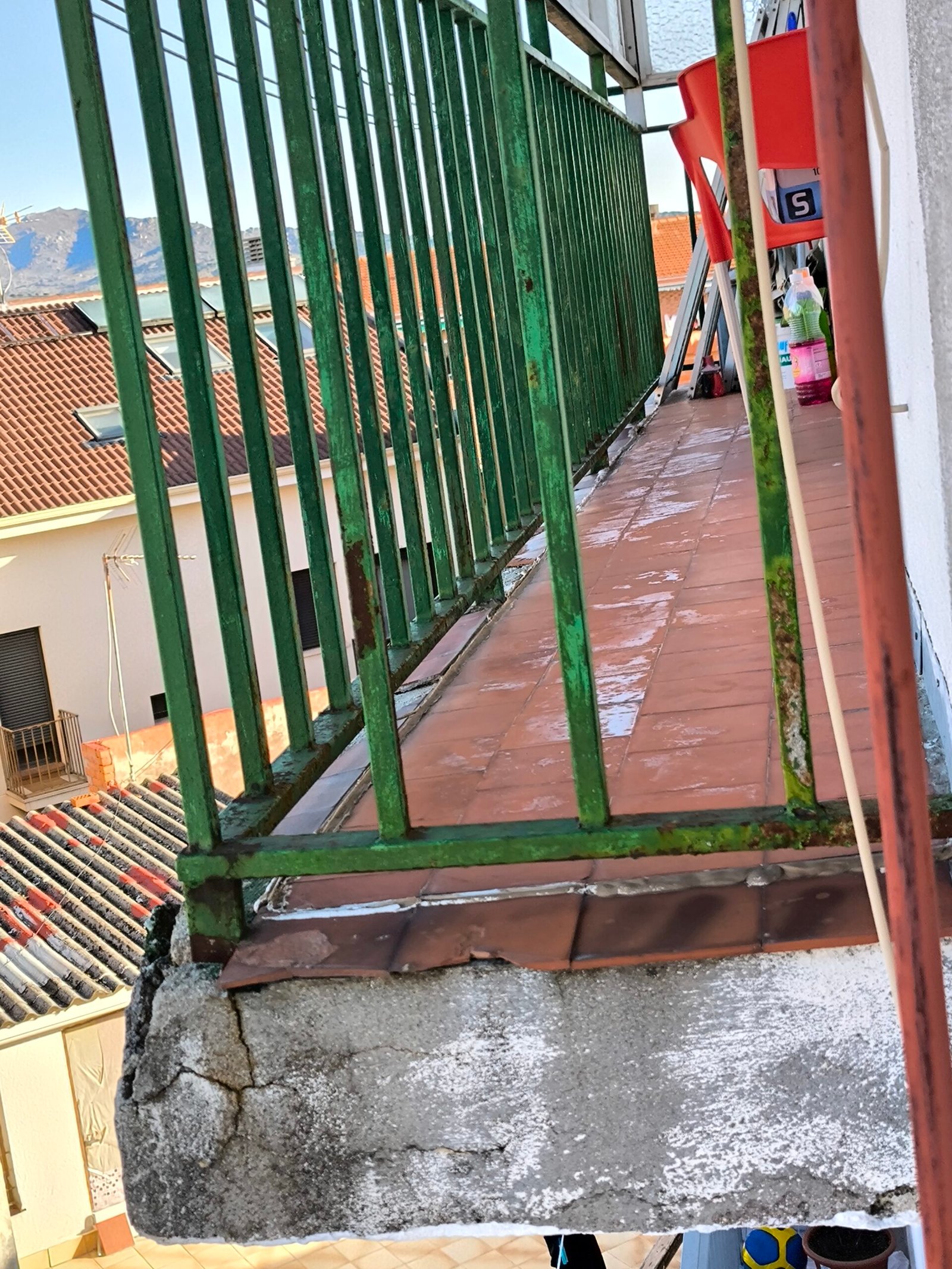 Rehabilitación de fachada medianera mediante picado, zonas abolsadas, grietas, enfoscado y pintura